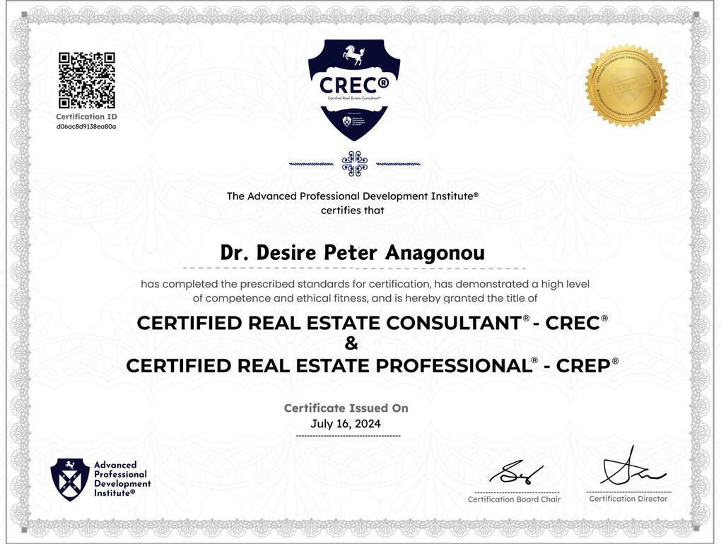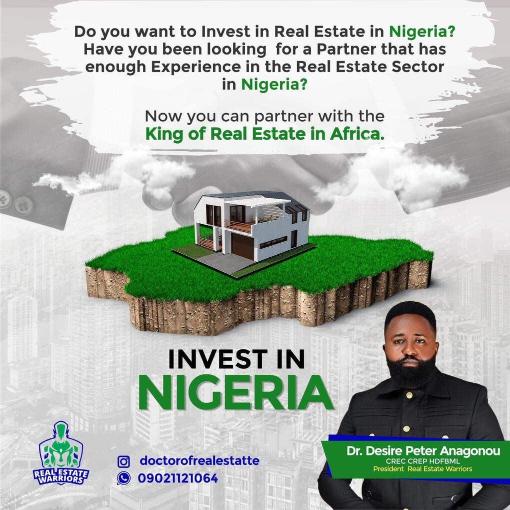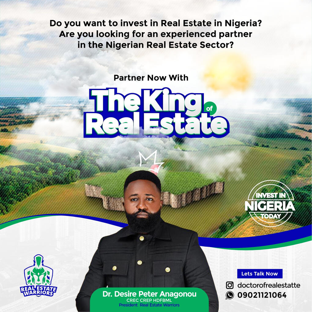 My Name is Dr. Desire Peter Anagonou CREC CREP CIPRM HDFBML, I am the CEO of Desire Real Estate Limited, President of Real Estate Warriors, Ecowas West African Youth Ambassador. Multiple Award Winning Real Estate Professional, Top 50 Young Persons of the Year 2023 and Winner Most Enterprising Real Estate Marketer 2023 amongst many other Accolades.I have a passion for helping people transit from tenancy to being a property owner themselves. I also love to see people build wealth through real estate investments. I partner with real estate developers to bring you the best investment deals in Real estate. I also assist in the process of acquiring the perfect home for you. If you also need a Land anywhere, Desire Real Estate is a good call.