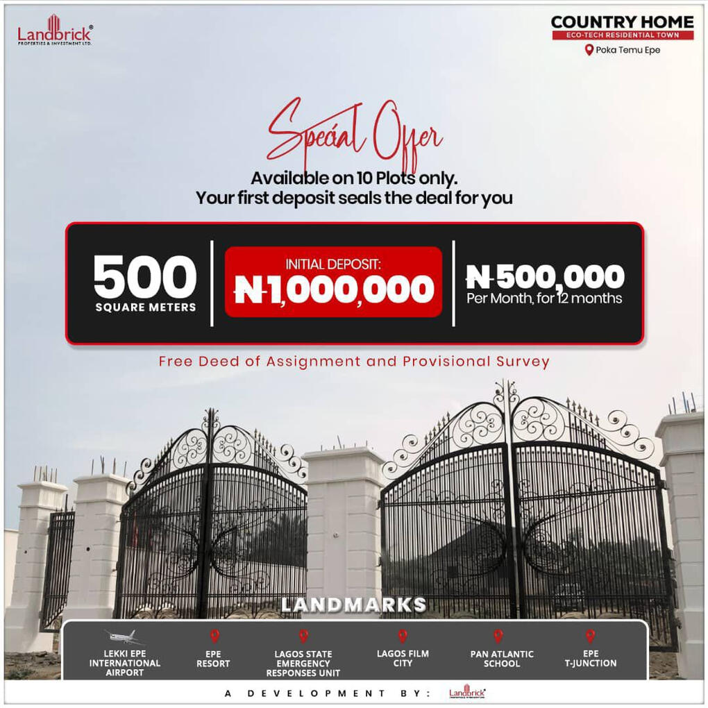 📍Located at Poka Temu Epe, Lagos State.Outright payment attracts 10% discount.Country Home Landmarks